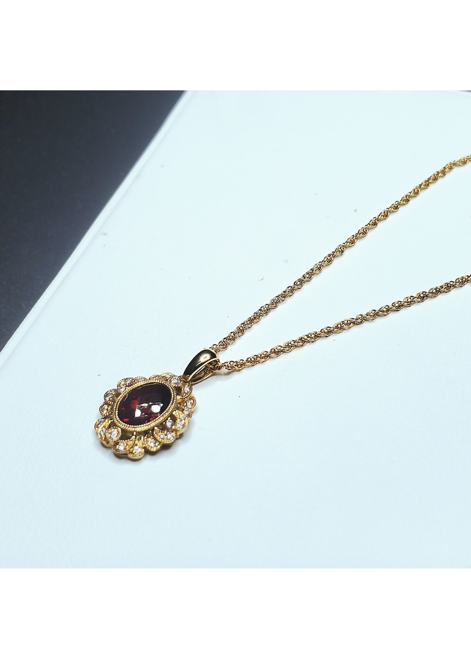 • 14 Karat Yellow Gold 1.4 Carat Natural Garnet w/ Natural Diamond Accents Vintage Style Necklace